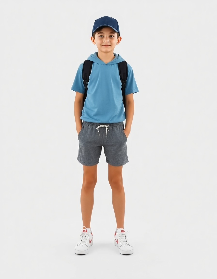 Boys gray athletic shorts: These shorts are comfortable, breathable, and perfect for an athletic body type, ensuring ease of movement.
