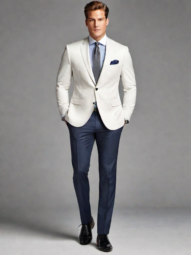 Man’s navy blue blue tailored blazer: This blazer offers a professional look that complements your build and is a versatile choice for interviews.