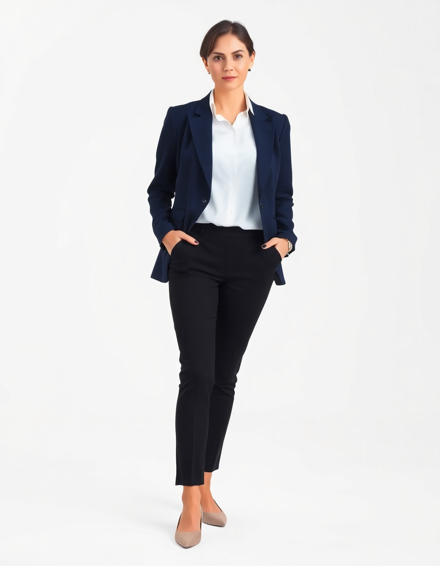 Womans navy blue blue tailored blazer: This blazer is professional and flattering, providing a polished look suitable for a job interview.