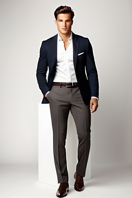 Man’s charcoal slim-fit dress pants: These pants offer a modern silhouette and pair well with the blazer for a cohesive outfit.